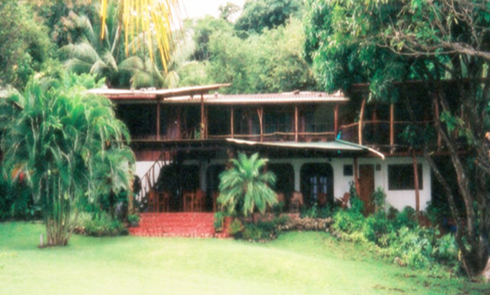 The Amor de Mar was a tumble-down hostel when the owners, Richard and Ori, moved there with their family from Santa Fe, New Mexico in 1991 and set to work turning it into a sort-of European, sort-of California style B&B. The first thing you notice is the lawn - in fact you can see it as you cross the bridge from Montezuma - a rich green expanse running down to the black rocks and the water. It sprouts big wooden lawn chairs and a forest of hammocks. Everyone not out on the lawn is lounging under the big portal studying their birding charts, puzzling over the road map, or just napping. We hit the hammocks and listened to the waves on the incoming tide.