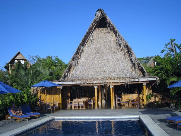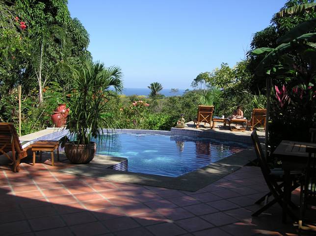 A few kilometers north of Playa Santa Teresa, the beachfront developments are behind you and you're back in the Costa Rica of expansive, empty beaches, occasional fishing boats and sleepy little towns. Playa Manzanillo is one of them - miles of beautiful beach, a couple of restaurants and a soccer field. Ylang-Ylang Lodge is a little piece of France in this idyllic countryside. Olivier the owner has visited well over a hundred countries, and chose this spot to call home.