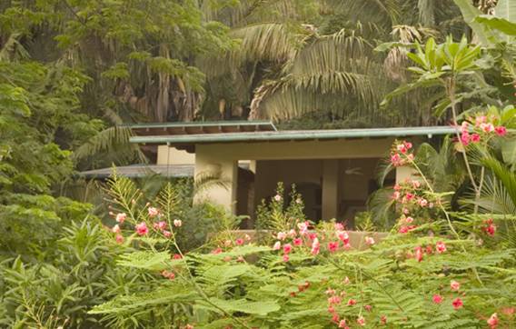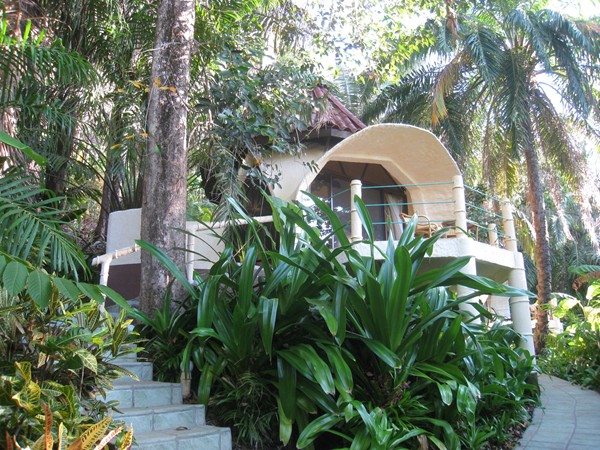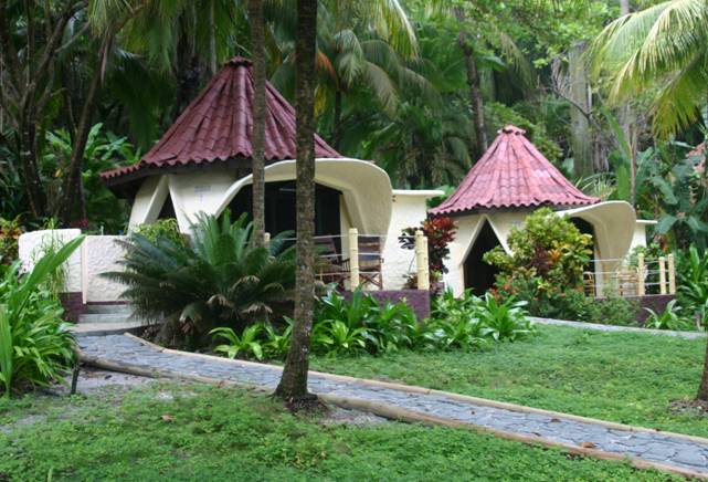Ylang Ylang's eight concrete-shelled domes are an innovative approach to beach accommodations and give the place an early1970's, Whole-Earth-Catalog kind of feel. Nestled as they are into the jungle, the red-roofed white domes with their triangular doors and windows look almost like odd growths, or some kind of alien conveyance. Inside, they're roomy and comfortable with king beds, good lighting, plenty of storage space, and outdoor showers (except #2, where everything's inside). Buckminster Fuller would be proud.